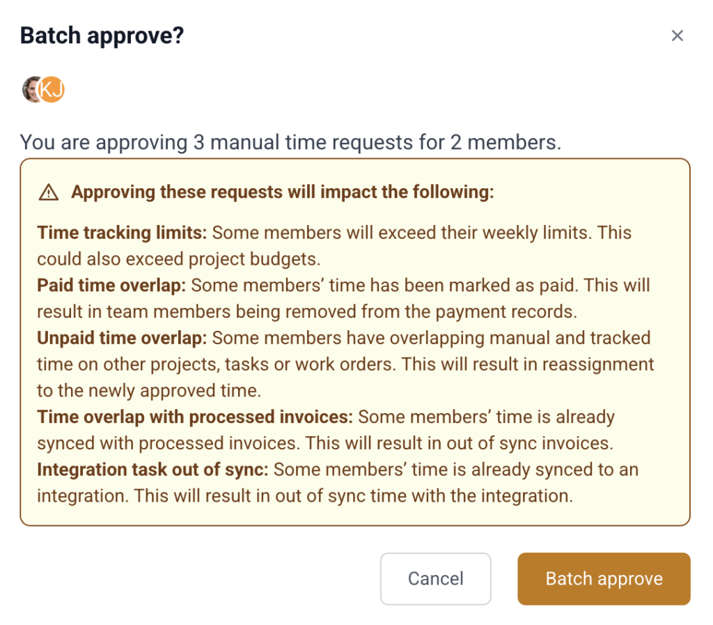 Upon clicking Approve, you will see the batch approval dialog. Click on Batch approve to confirm.