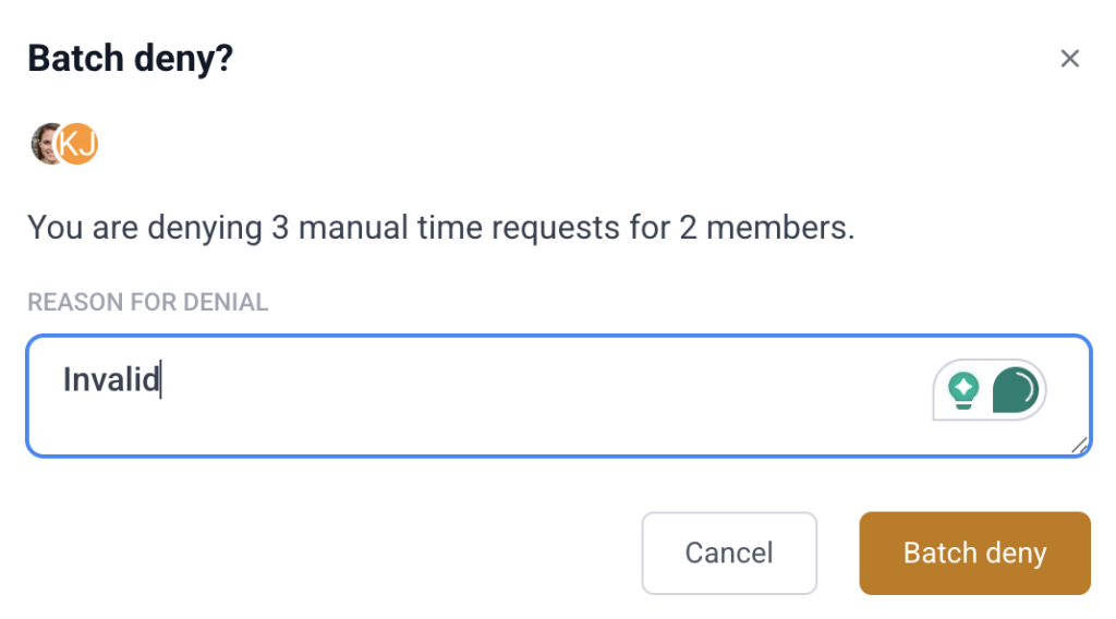 Bulk deny dialog