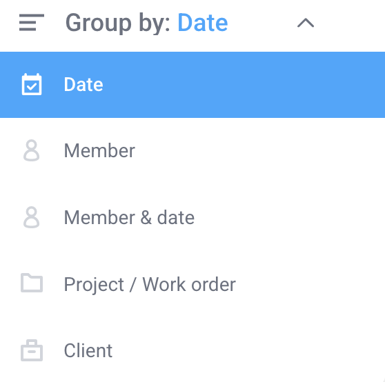 - Group by Filter – presents the data grouped based on the selected filter. By default, this is set to “Date.”